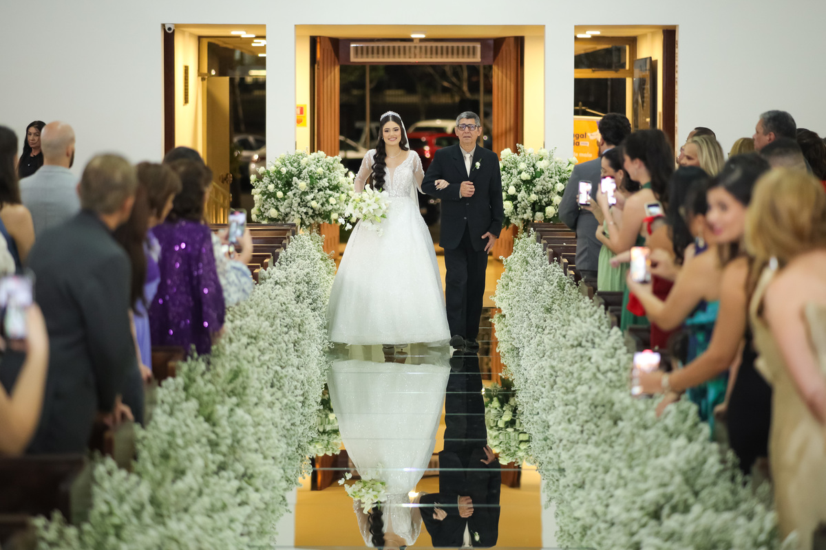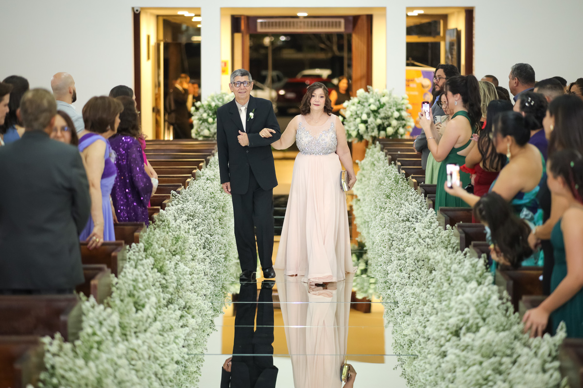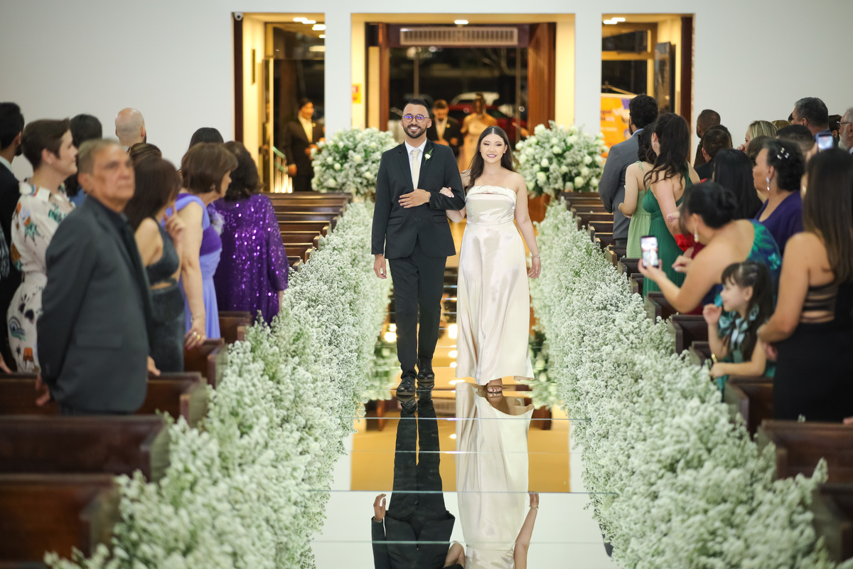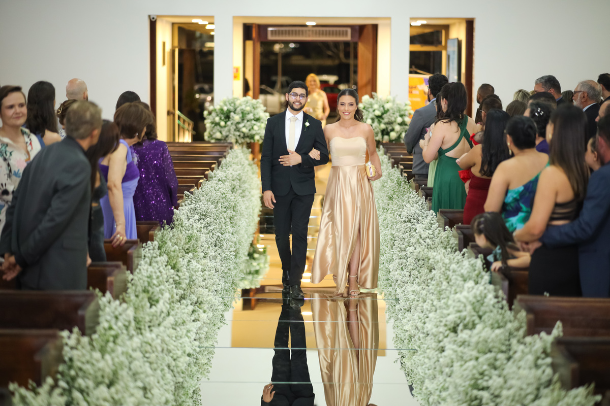 Testemunhar a união de Felipe e Bárbara na icônica Paróquia Nossa Senhora do Perpétuo Socorro foi uma experiência de pura estética e sentimento. Um casamento que uniu a tradição da cerimônia religiosa com a energia vibrante de Brasília.